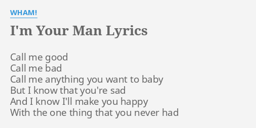 Im Your Man was written very quickly. - Im Your Man Official VideoListen on Spotify - httpsmarturlitWham_SpotifyListen on Apple Music - httpsmarturlitWham_AppleAmazon - http. Irfane I thought I had it all together But I was led astray The day you walked away You were the clock That was ticking in my heart Changed my state of mind When loves so hard to find.